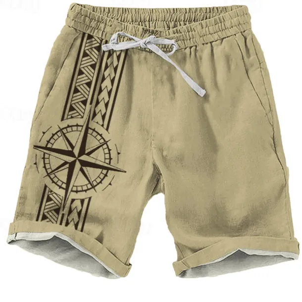 Men’s Geometric Pattern Nautical Compass Shorts Beach Shorts Casual Shorts Mid Waist Vacation Streetwear Hawaiian Outdoor Casual Holiday Drawstring Side Pockets Designer Clothing Apparel