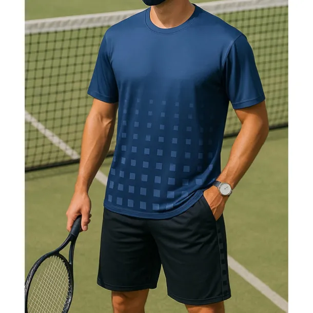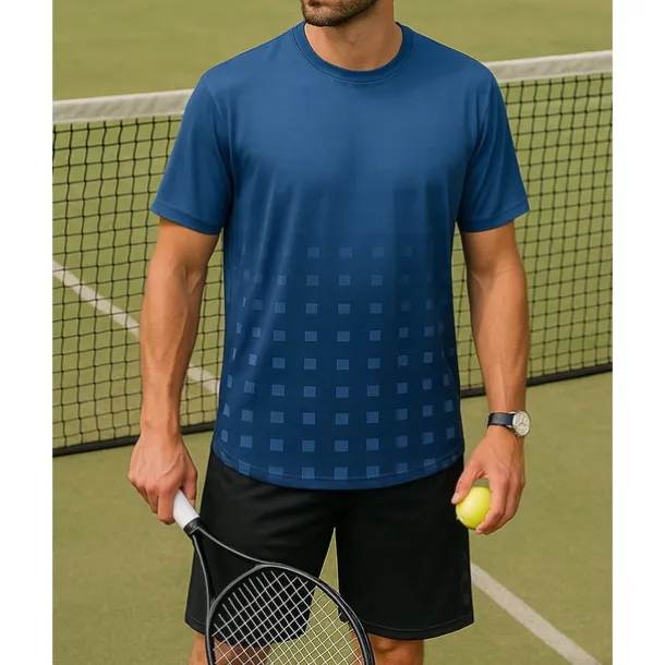 Men’s Gradient Sports Set Tennis Set Two-piece Suit Short Sleeves Printing Sweat-Wicking Moisture Wicking Breathable Tennis Golf Pickleball White Blue Tennis Clothing