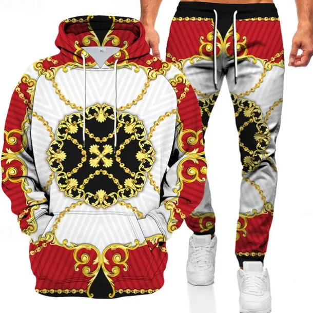 Men’s Graphic Chains Print 2pcs 3D Sweatshirt Sets Tracksuit Hoodies Long Sleeve Long pants Hooded Streetwear Sportswear Basic Sports & Outdoor Casual Sports Print Spring Fall Black White Red