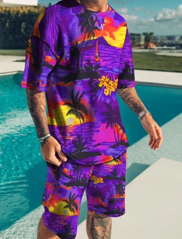 Men’s Graphic Coconut Tree Beach 2pcs Tees sets Matching Sets Short Sleeve Short Pants Crew Neck Hawaiian Designer Casual Outdoor Vacation Daily 3D Print Spring & Summer White Blue Dark Green