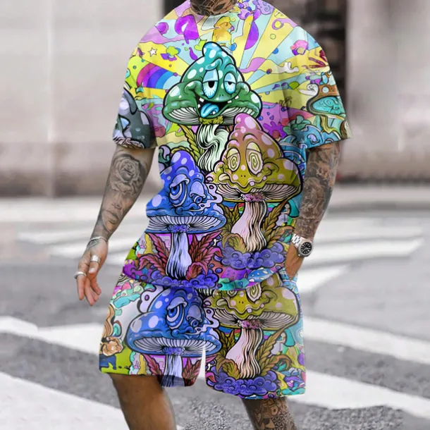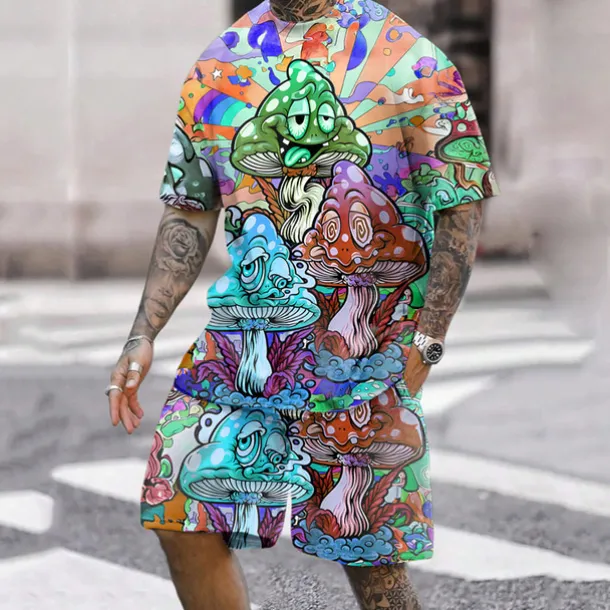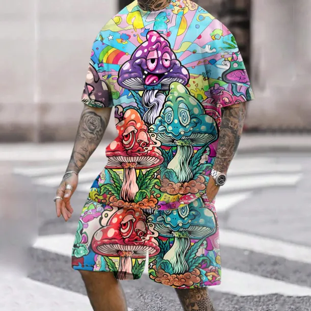Men’s Graphic Mushroom 2pcs Tees sets Short Sleeve Short Pants Crew Neck Designer Casual Comfortable Outdoor Vacation Daily 3D Print Spring & Summer Pink Red Blue
