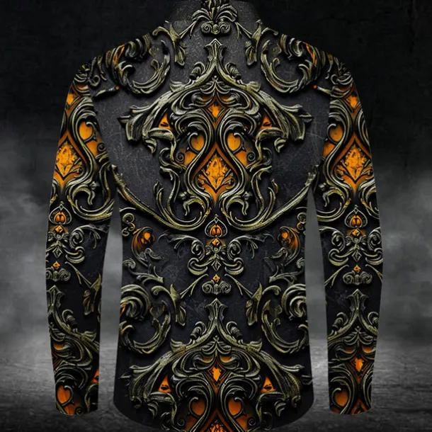 Men’s Halloween Costumes Day of the Dead Button Up Shirt Long Sleeve Dark Party Evening Wear Business Daily Fall Winter Spring & Summer Shirt Collar Button Up 3D Print Red Purple Orange Green Dark