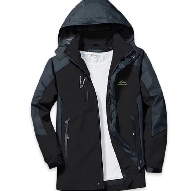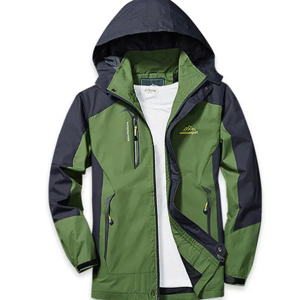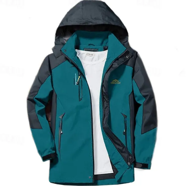 Men’s Hoodie Jacket Hiking Softshell Jacket Hiking Windbreaker Outdoor Patchwork Waterproof Windproof Quick Dry Lightweight Jacket Top Full Length Visible Zipper Hunting Fishing Climbing Black Army