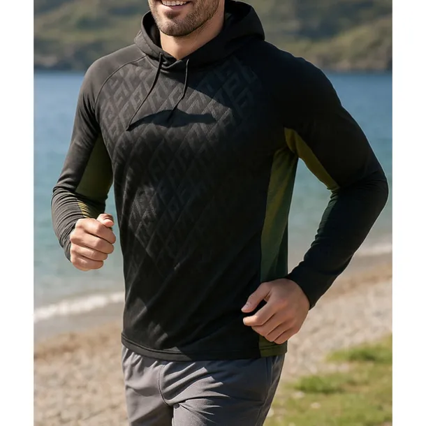 Men’s Hoodie Sweatshirt Long Sleeve Top Breathable Quick Dry Lightweight Tennis Golf Running Sportswear Activewear Color Block Black Red Dark Blue