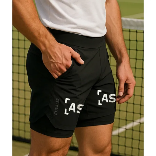 Men’s Letter & Number Sports Shorts Tennis Shorts 2 in 1 Reflective Strip Moisture Wicking Breathable Tennis Golf Pickleball Black Tennis Clothing
