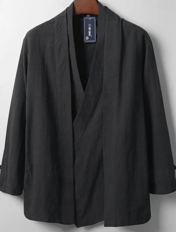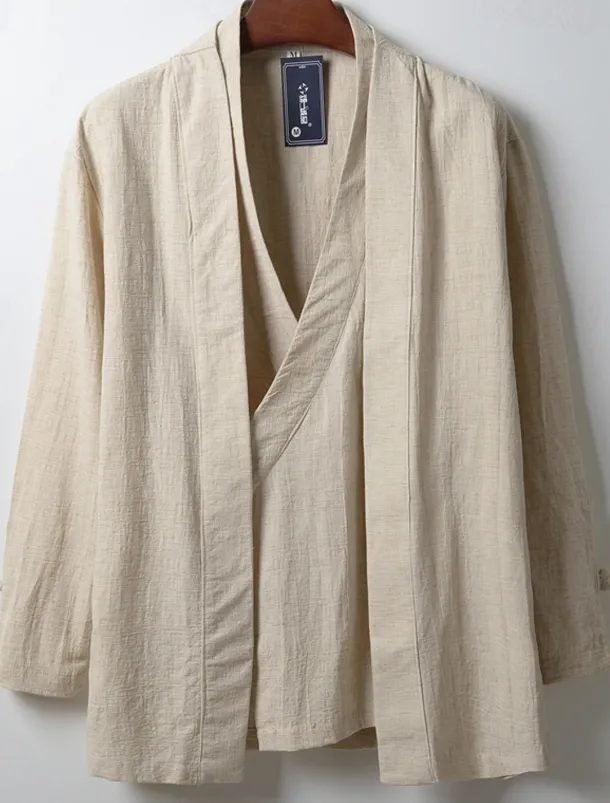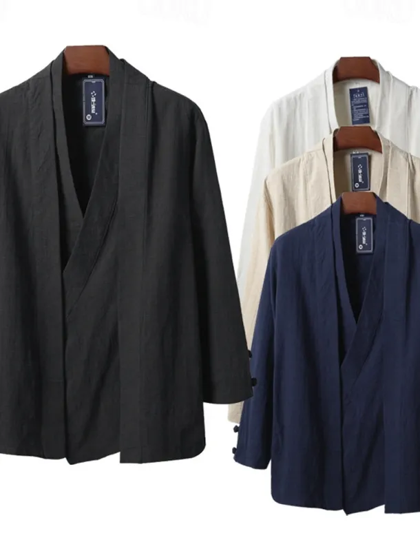 Men’s Lightweight Jacket Summer Jacket Linen Jacket Vacation Daily Wear Durable Casual / Daily 2 in 1 Winter Spring & Fall Solid / Plain Color Japan and Korea Style Leisure Regular Black White Dark