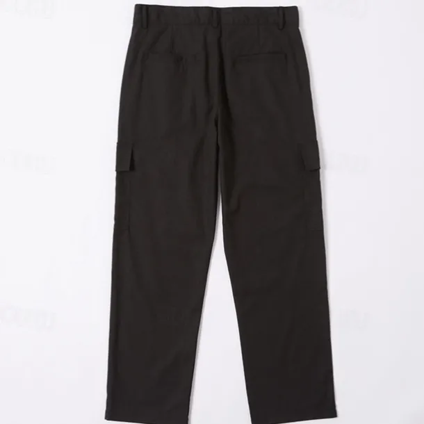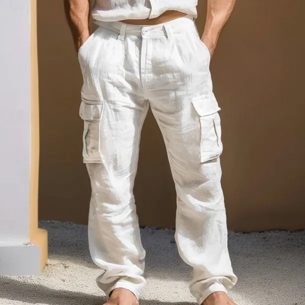 Men’s Linen Pants Trousers Summer Pants Multi Pocket Straight Leg Plain Comfort Breathable Full Length Outdoor Daily Going out Fashion Streetwear Black White