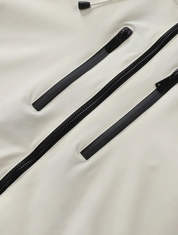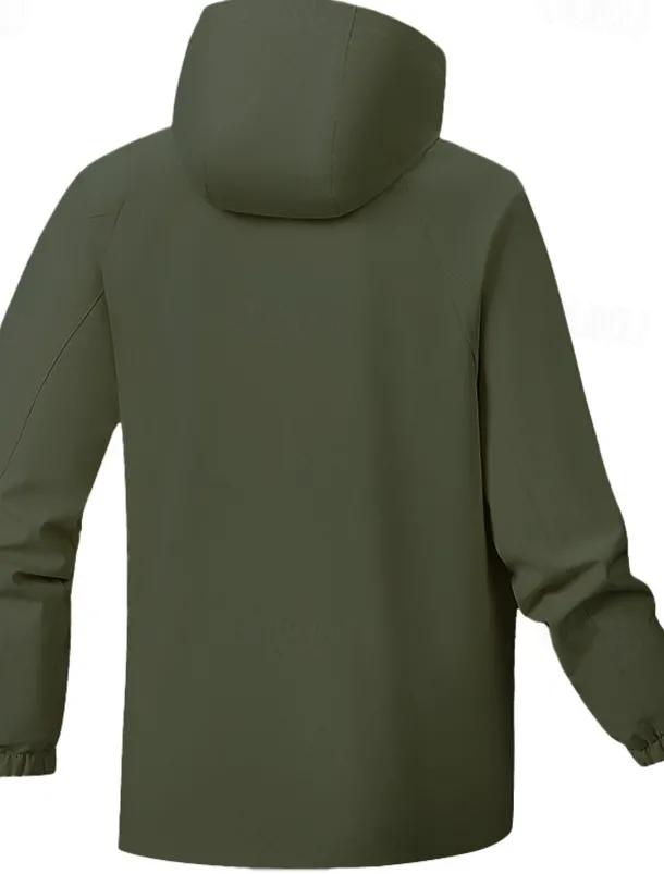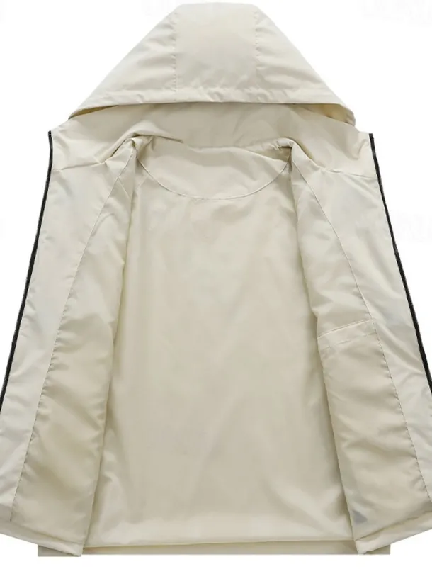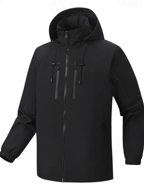 Men’s Outdoor Jacket Zipper Pocket Multiple Pockets Spring Fall Winter Solid Color Sports Neutral Hooded Black White Army Green Rose Red Jacket