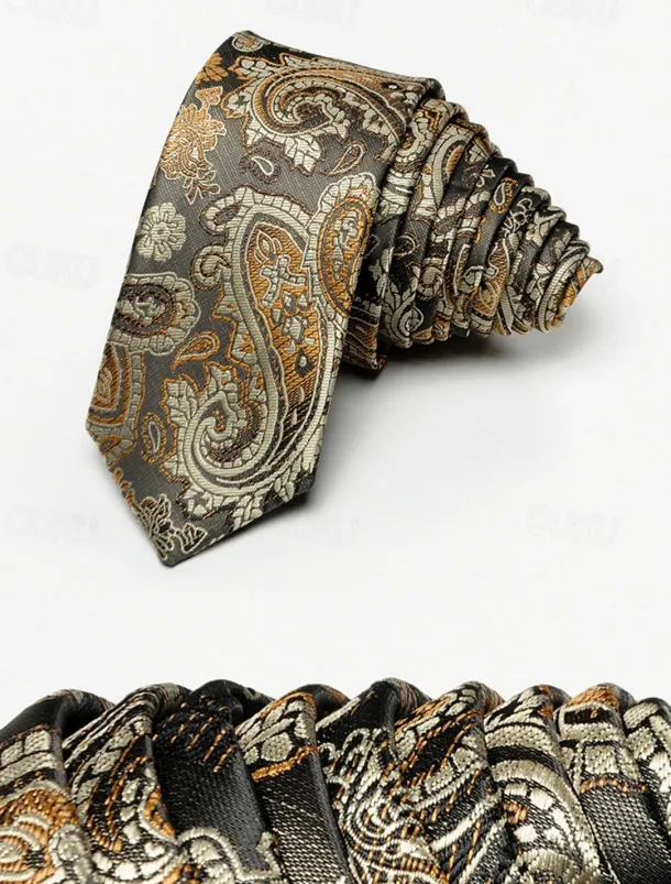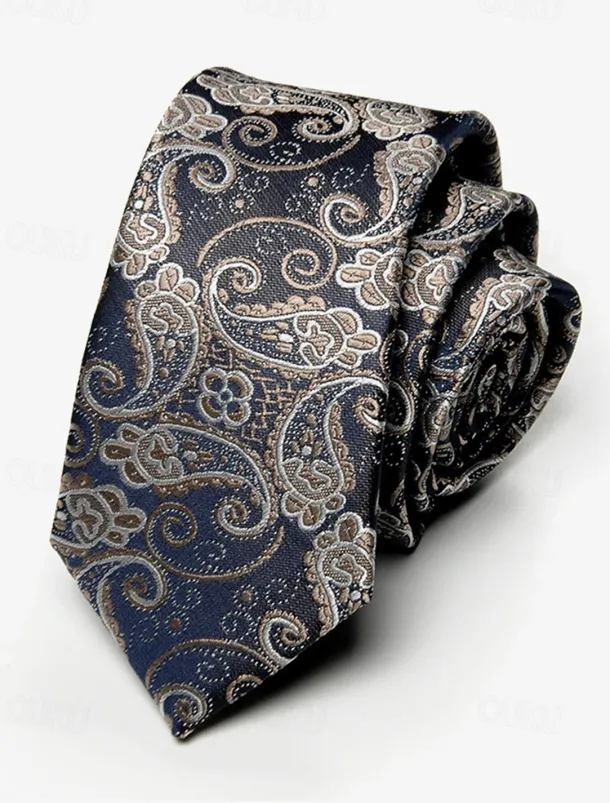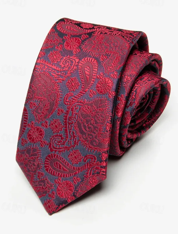 Men’s Paisley Faux Silk Tie – Classic Vintage-Style Floral Pattern Necktie for Formal and Business Attire