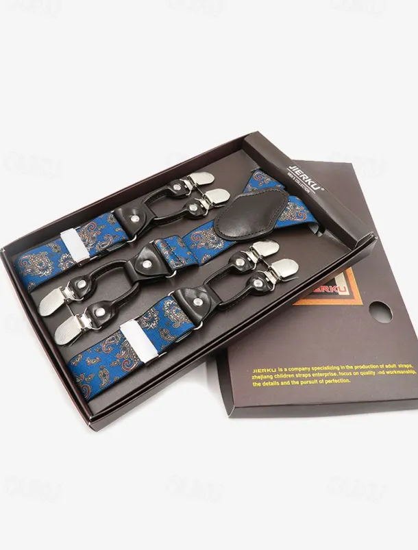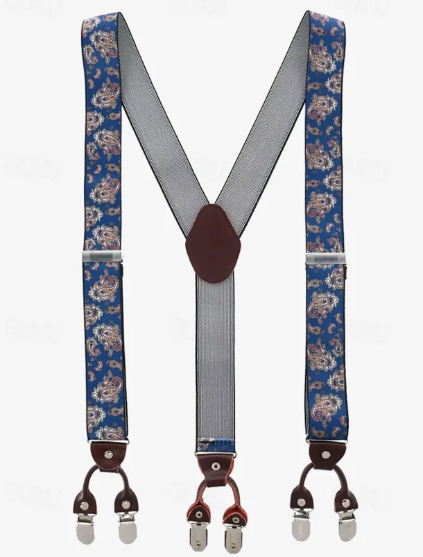 Men’s Paisley Pattern Adjustable Suspenders – Fashionable Y-Back Clip-On Braces for Formal and Casual Wear