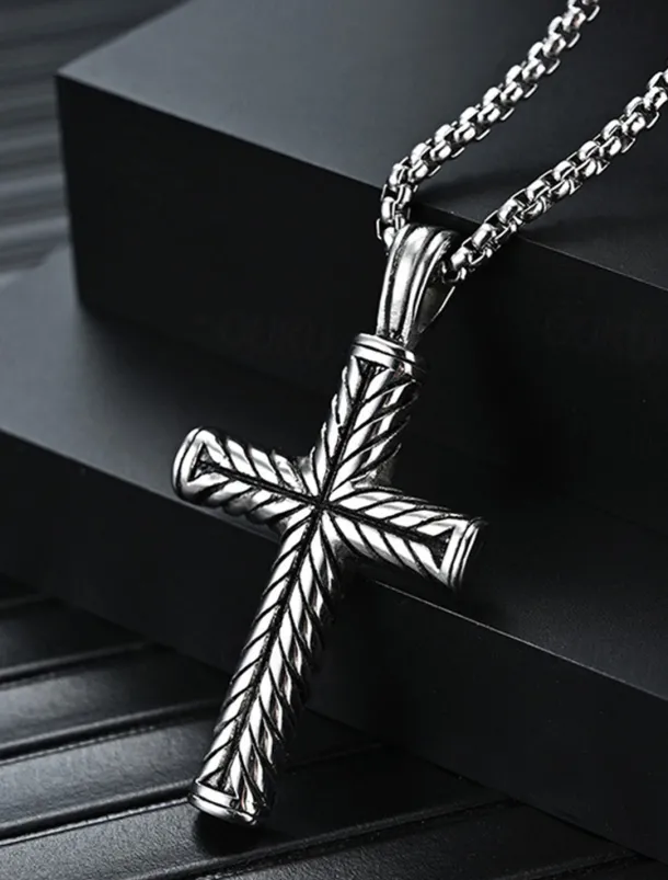 Men’s Pendant Necklace Steel color and steel color flower blue chain Stainless Steel Cross