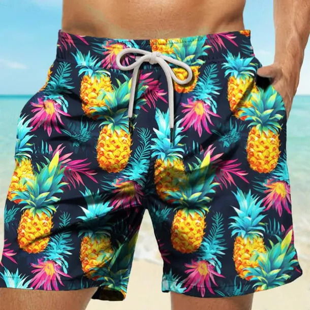 Men’s Pineapple Swim Trunks Swim Shorts Board Shorts Mid Waist Vacation Hawaiian Holiday Vacation Holiday Beach Drawstring with Mesh lining Elastic Waist Designer Clothing Apparel