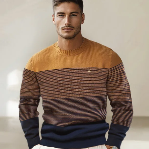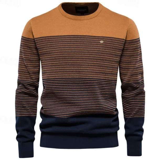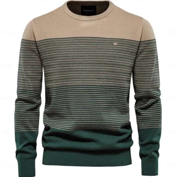 Men’s Pullover Sweater Jumper Knit Ombre Crew Neck Knitwear Elegant Christmas Outdoor Clothing Apparel Fall Winter Dark Green Orange S M L