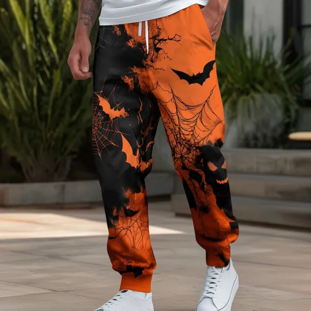 Men’s Pumpkin Bat Halloween Costumes Sweatpants Joggers Trousers Mid Waist Drawstring Elastic Waist Casual Jogging Streetwear Workout Athletic Sweatpants with Pockets Spring Fall 3D Print Yellow