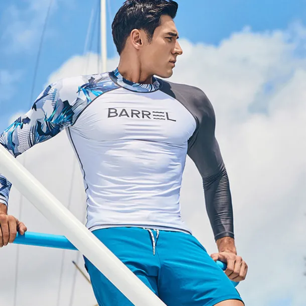 Men’s Rash Guard Swim Shirt UPF50+ Quick Dry Lightweight Long Sleeve Sun Shirt Bathing Suit Swimming Surfing Beach Water Sports Patchwork Spring Summer