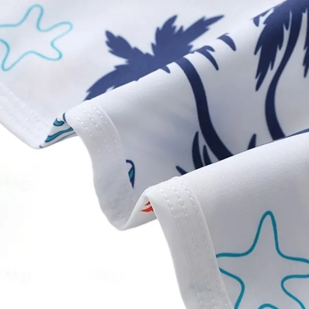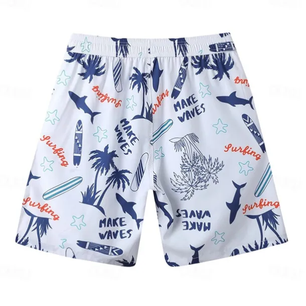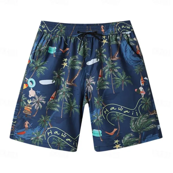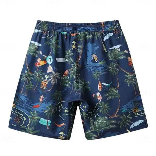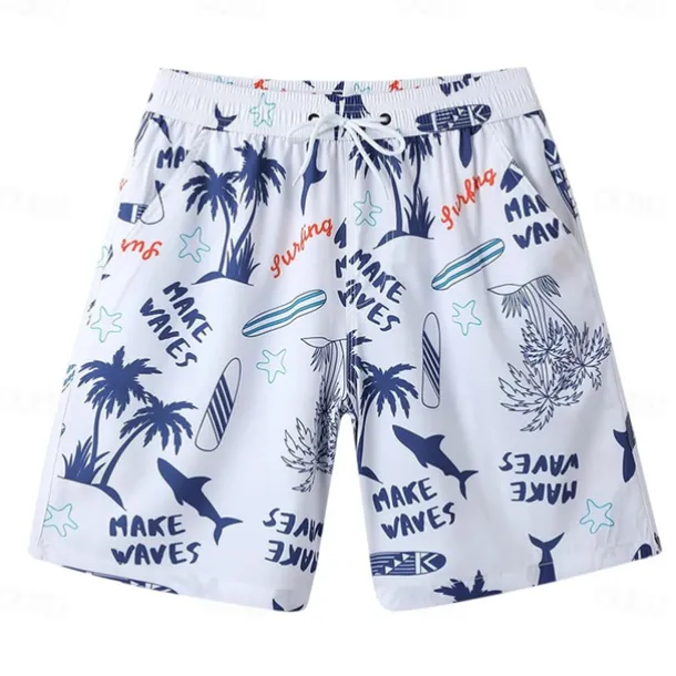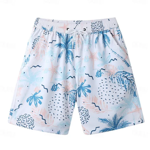 Men’s Shorts Beach Shorts Drawstring Graphic Leaf Tree Breathable Quick Dry Knee Length Outdoor Vacation Home Vacation Ethnic Style White & Blue Dark Blue Micro-elastic