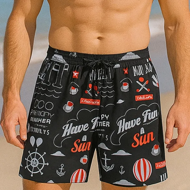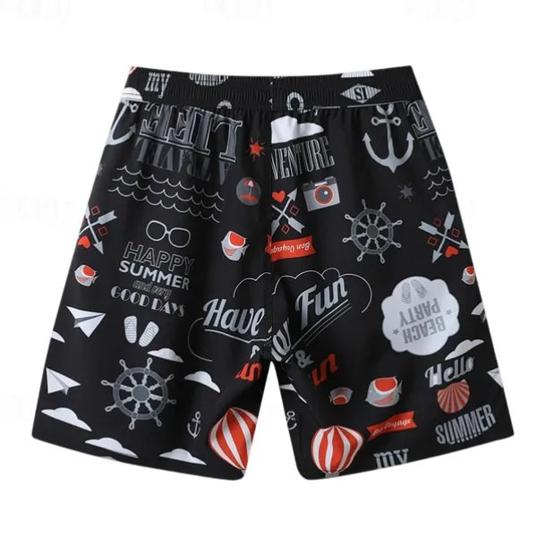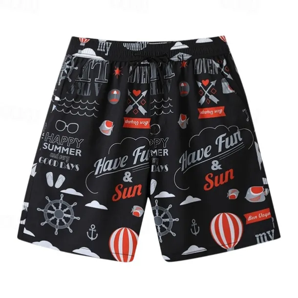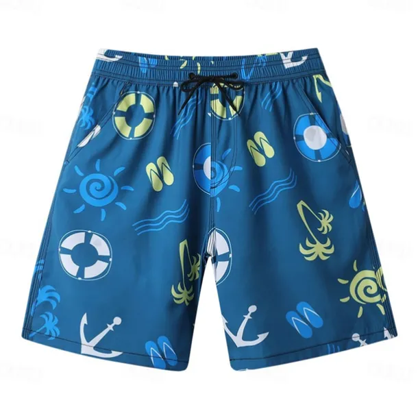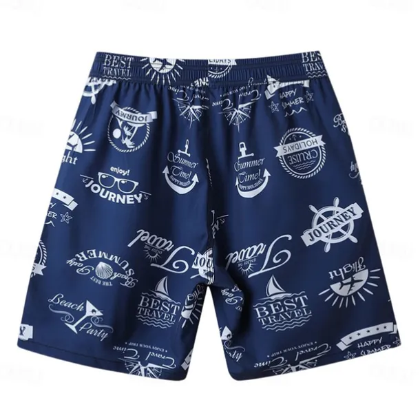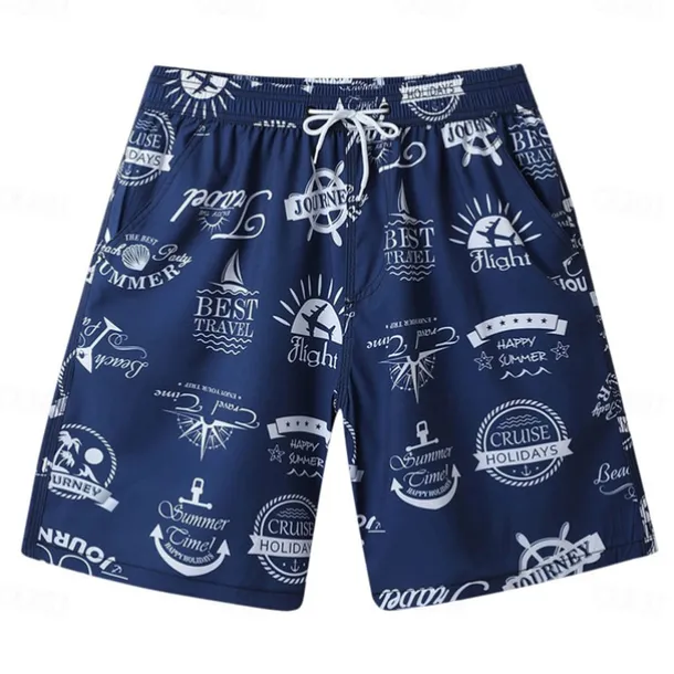 Men’s Shorts Beach Shorts Drawstring Graphic Letter Abstract Breathable Quick Dry Knee Length Outdoor Vacation Home Vacation Ethnic Style Lake blue White & Blue Stretchy
