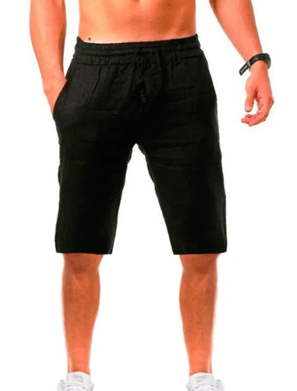 Men’s Shorts Linen Shorts Drawstring Plain Daily Streetwear Basic Light Khaki. Black