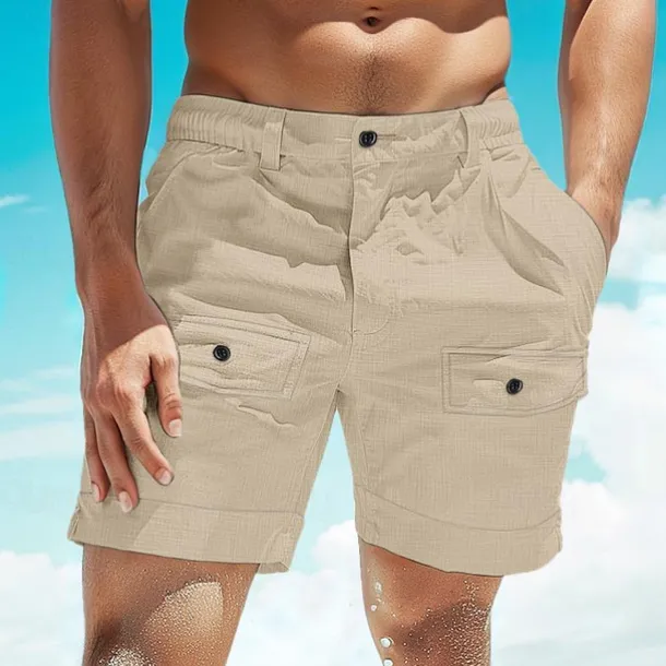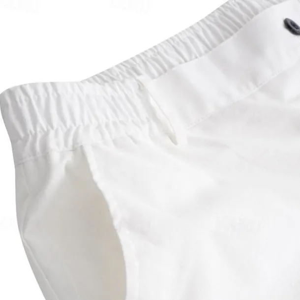 Men’s Shorts Linen Shorts Summer Shorts Beach Shorts Buttons Pocket Elastic Waist Plain Comfort Breathable Short Casual Daily Holiday Fashion Classic Style White Khaki