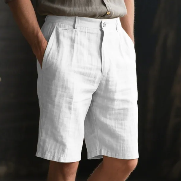 Men’s Shorts Linen Shorts Summer Shorts Beach Shorts Buttons Pocket Plain Comfort Breathable Short Vacation Holiday Beach Hawaiian Boho White Khaki