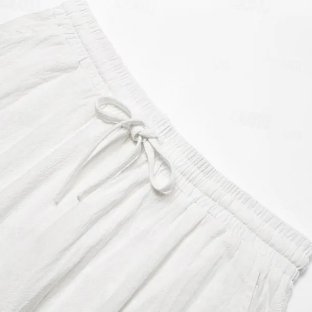 Men’s Shorts Linen Shorts Summer Shorts Button Split Front Pocket Plain Comfort Breathable Knee Length Party Outdoor Casual Fashion Basic White Navy Blue
