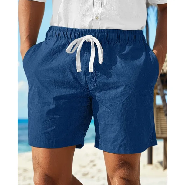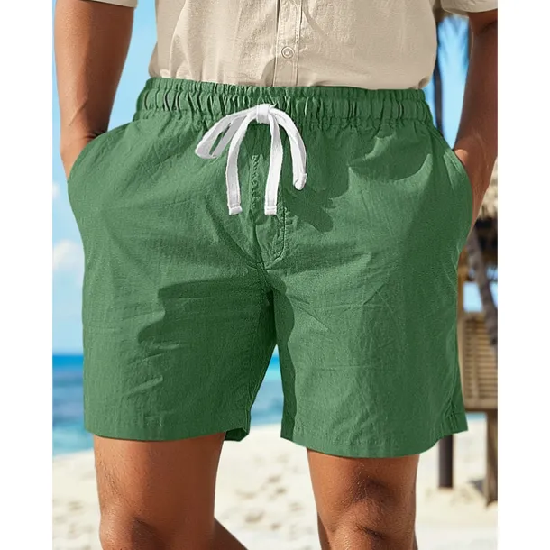 Men’s Shorts Linen Shorts Summer Shorts Drawstring Elastic Waist Straight Leg Plain Comfort Breathable Above Knee Casual Daily Holiday Fashion Classic Style Black White