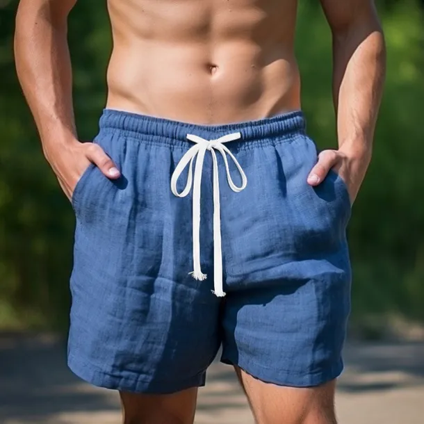 Men’s Shorts Linen Shorts Summer Shorts Pocket Drawstring Elastic Waist Plain Comfort Breathable Short Casual Daily Holiday Fashion Classic Style Black White