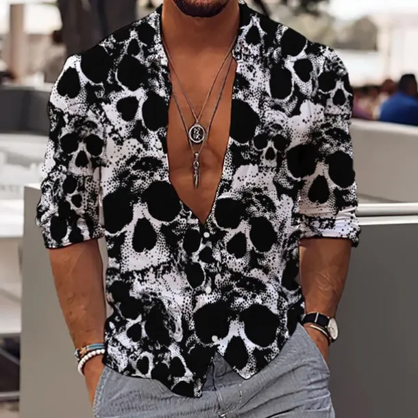 Men’s Skull Halloween Costumes Day of the Dead Shirt Button Up Shirt Long Sleeve Sports Fashion Streetwear Outdoor Casual Daily Fall & Winter Turndown Print Button-Down Black