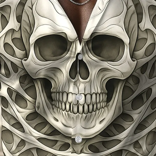 Men’s Skull Halloween Costumes Shirt Satin Shirt Dress Shirt Long Sleeve Dark Gothic Style Holiday Summer Spring Fall Turndown 3D Print Button Up Shirts Blue Green Khaki Gray