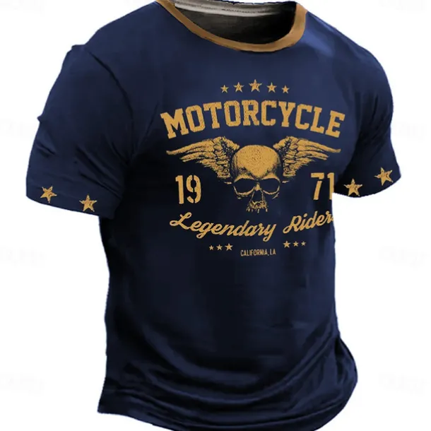 Men’s Skull Motorcycle T shirt Short Sleeve T shirt 3D Print Crew Neck Shirt Retro Vintage Western Style Street Casual Bar Black Red Blue Spring & Summer Clothing Apparel S M L XL 2XL 3XL