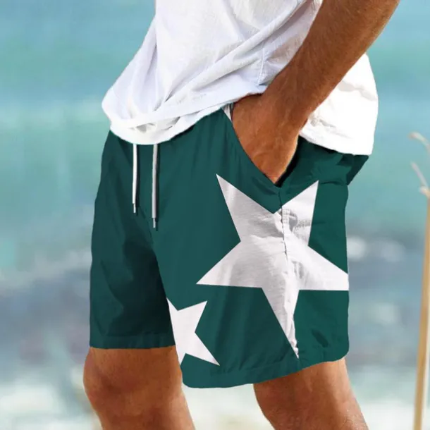 Men’s Star Swim Trunks Swim Shorts Board Shorts Mid Waist Vacation Hawaiian Holiday Vacation Holiday Beach Drawstring with Mesh lining Elastic Waist Designer Clothing Apparel
