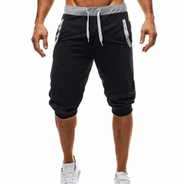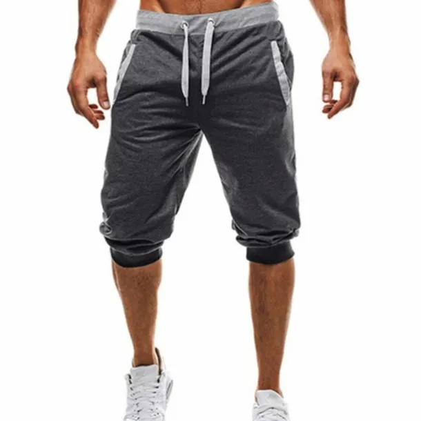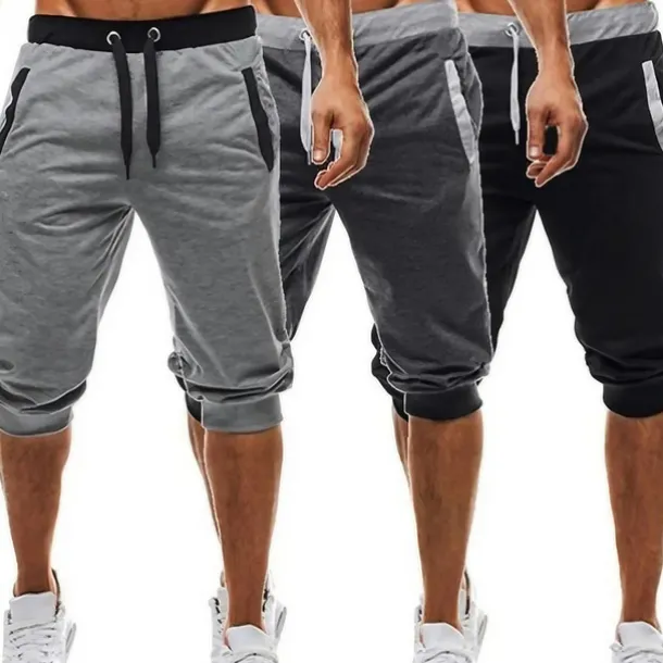 Men’s Sweatpants Cropped Pants Casual Pants Capri Pants Patchwork Drawstring Plain Daily Holiday Going out Streetwear Basic Black Light Grey Micro-elastic