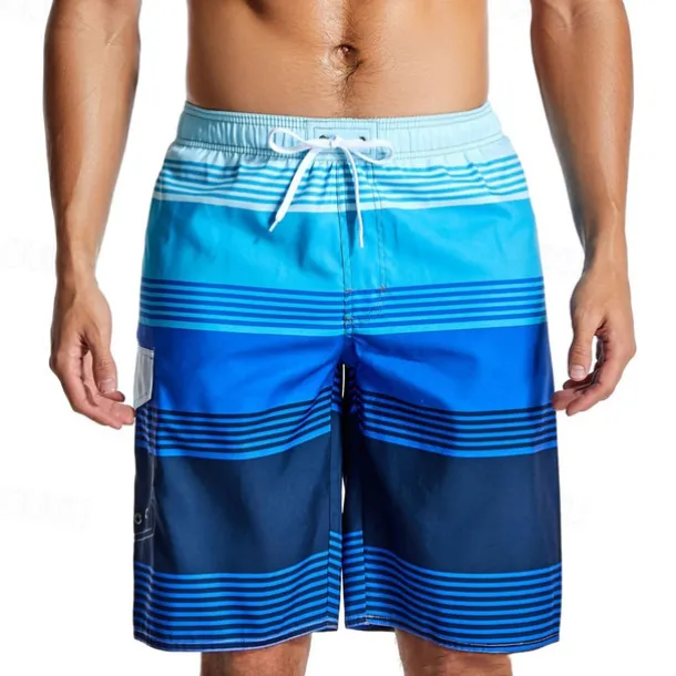 Men’s Swim Trunks Swim Shorts Board Shorts Bottoms Drawstring with Pockets Swimming Surfing Beach Water Sports Stripes Printed Summer Spring