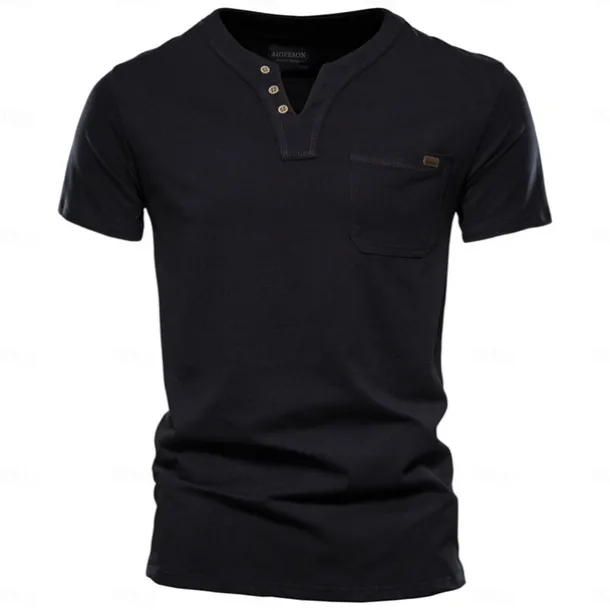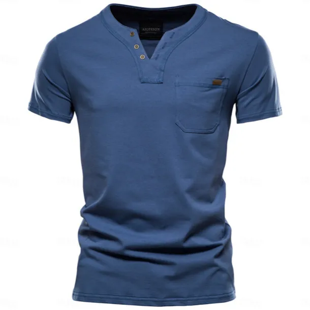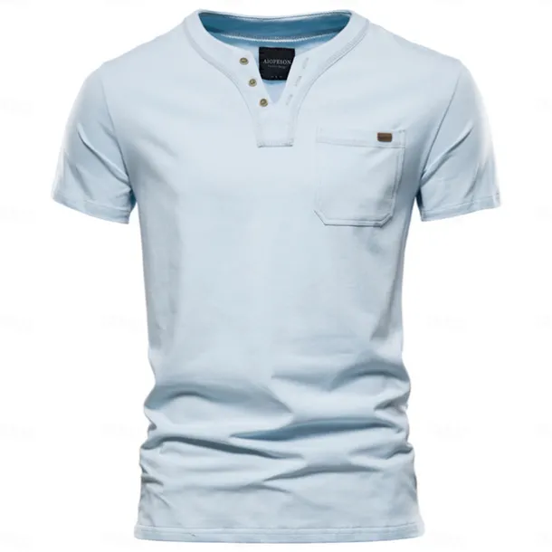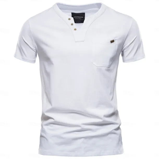 Men’s T Shirt Short Sleeve V Neck Summer All Seasons Solid Color Daily Casual Daily Casual Pocket V Neck Vacation Causal Casual Light Blue Black White Top Tee for Men