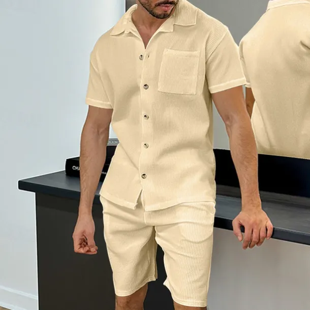 – Stay cool and stylish during the summer with this men’s casual 2-piece outfit