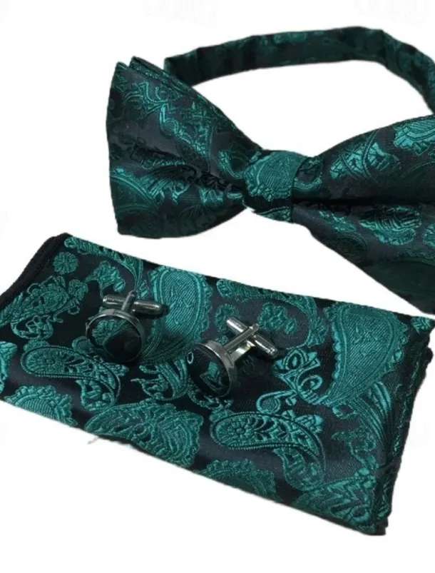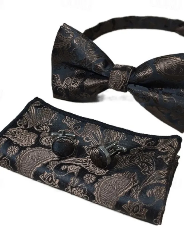 Men’s Ties Bow Tie Pocket Square Cufflinks Sets Bow Tie Gift Box Work Wedding Gentleman Jacquard