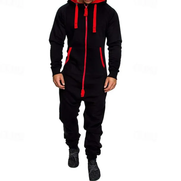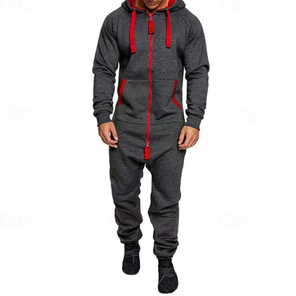 Men’s Tracksuit Jumpsuit Full Zip One-piece Casual Fall Long Sleeve Thermal Warm Soft Fitness Gym Workout Running Sportswear Activewear Color Block Dark Grey Navy Black