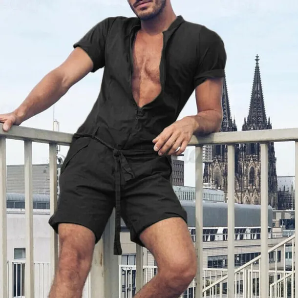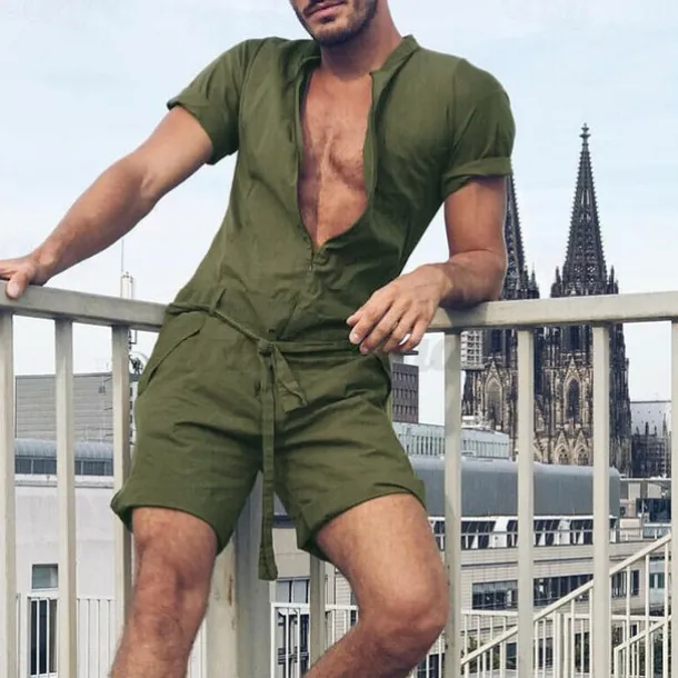 Men’s Tracksuit Jumpsuit One-piece Half Zip Casual Breathable Soft Fitness Gym Workout Running Sportswear Activewear Solid Colored Black Green