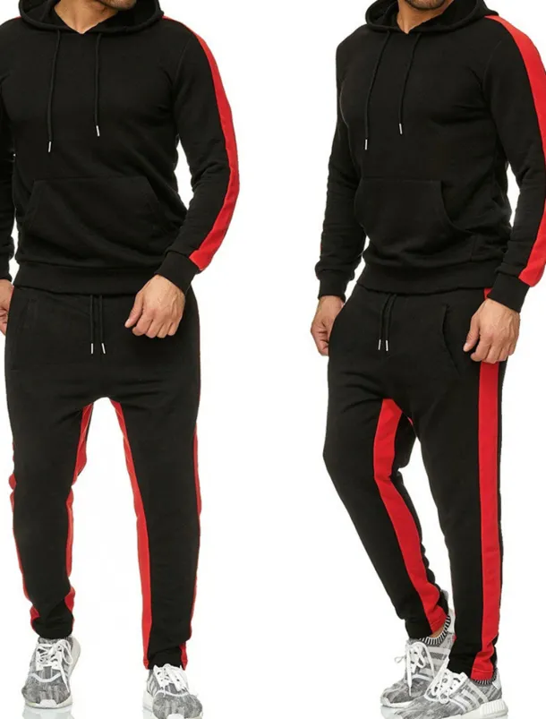 Men’s Tracksuit Sweatsuit Activewear Set Pullover Hoodie Sweatshirt Jogging Suits Black White Yellow Red Dark Gray Hooded Solid Color Stripes Sports & Outdoor Going out Sportswear Sportswear Workout