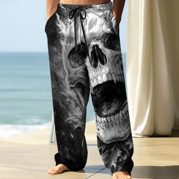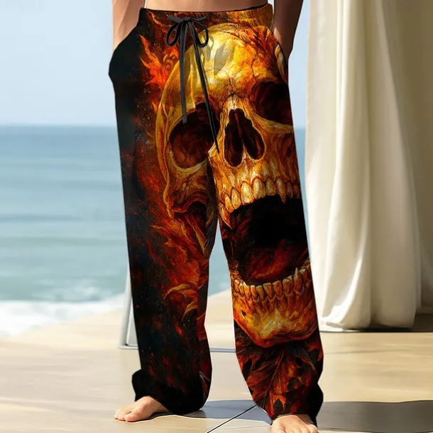 Men’s Trousers Baggy Pants Casual Pants Elastic Drawstring Waist Linen-Like Pants with Pockets Skull Flame Halloween Costumes Full Length Outdoor Holiday Dark Punk Gothic Style Black / Red Black+Grey
