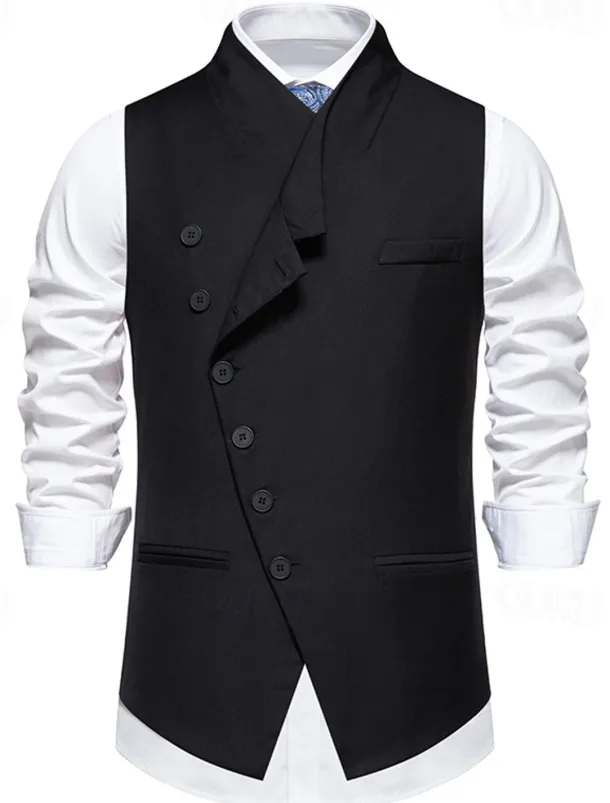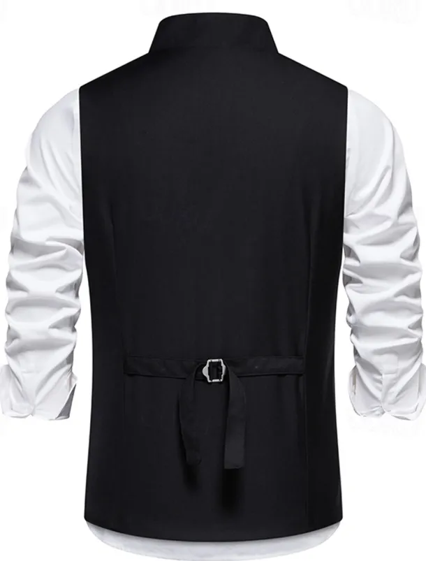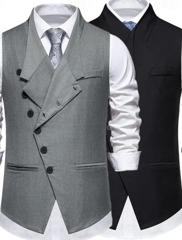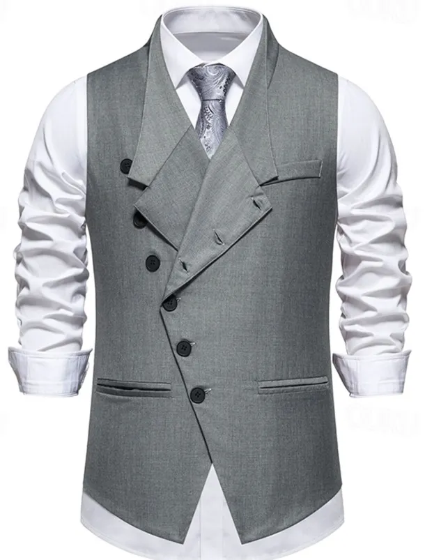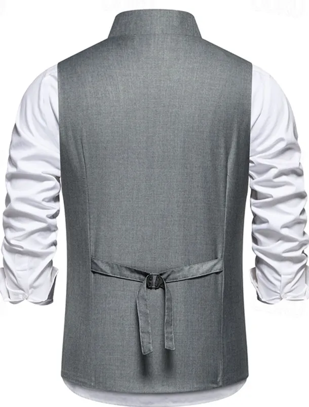Men’s Vest Gilet Daily Wear Vacation Going out Vintage Fashion Spring & Fall Button Polyester Comfortable Plain Single Breasted V Neck Regular Fit Black Gray Vest