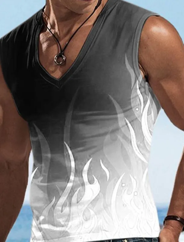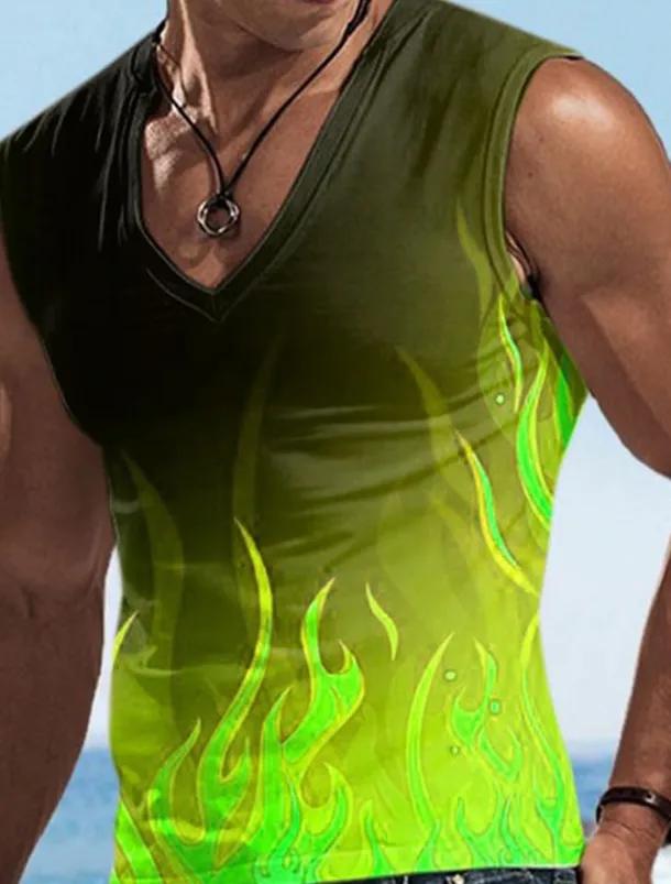 Men’s Vest Top Sleeveless T Shirt for Men Graphic Flame V Neck Clothing Apparel 3D Print Sports Running Sleeveless 3D Print Designer Casual Muscle
