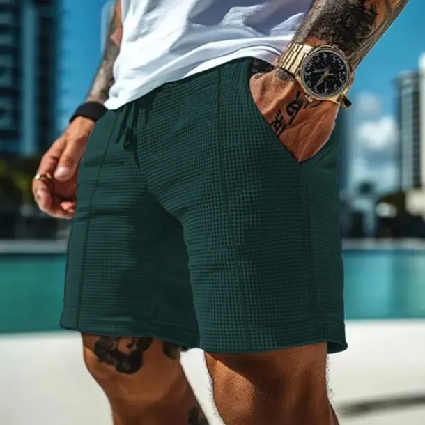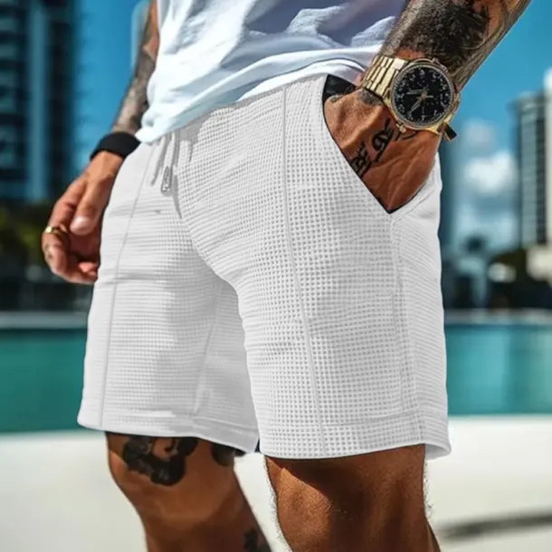 Men’s Waffle Shorts Shorts Summer Shorts Casual Shorts Pocket Drawstring Elastic Waist Plain Comfort Breathable Short Outdoor Vacation Sport Casual Black White Micro-elastic