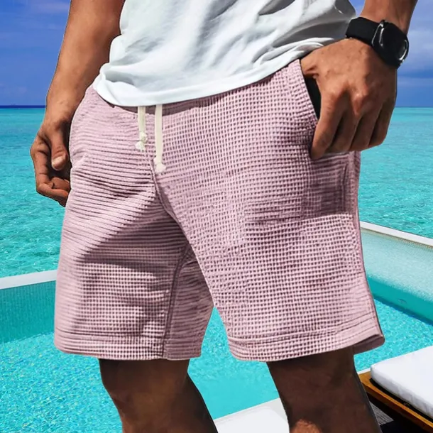 Men’s Waffle Shorts Shorts Summer Shorts Casual Shorts Pocket Elastic Waist Drawstring Plain Comfort Breathable Short Outdoor Vacation Sport Casual White Blue