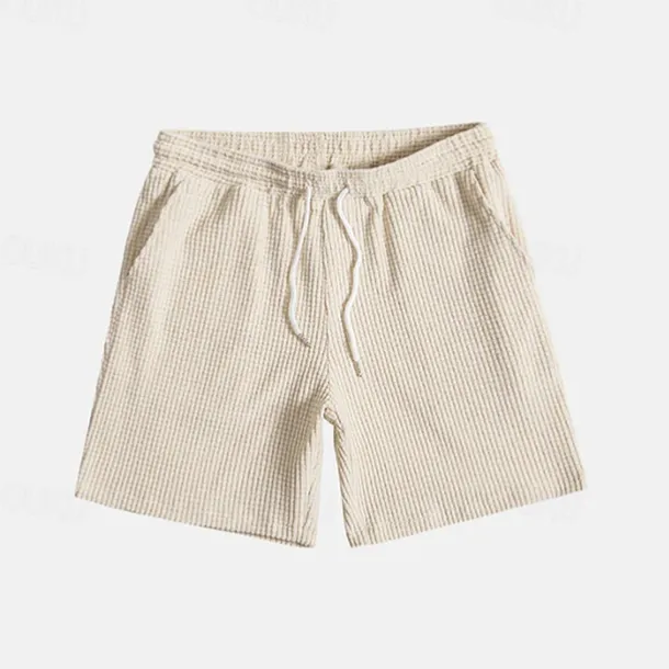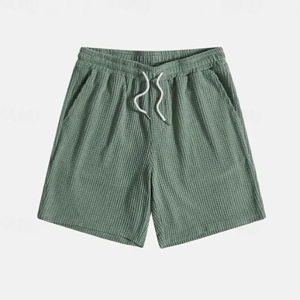Men’s Waffle Shorts Summer Shorts Casual Shorts Pocket Elastic Waist Drawstring Plain Comfort Breathable Short Vacation Holiday Casual Army Green Apricot