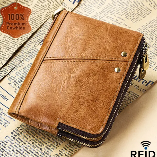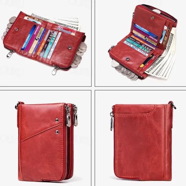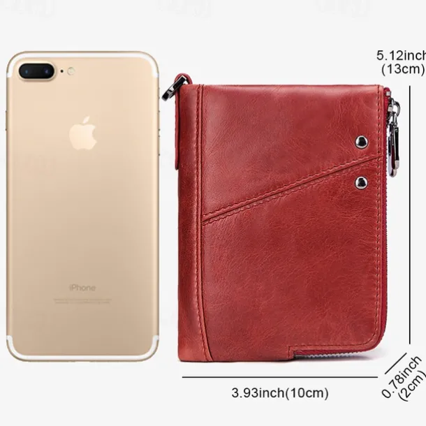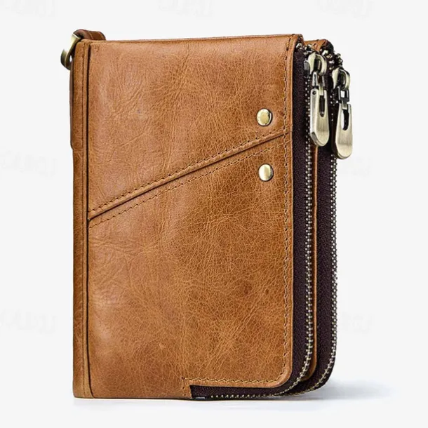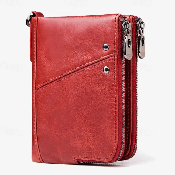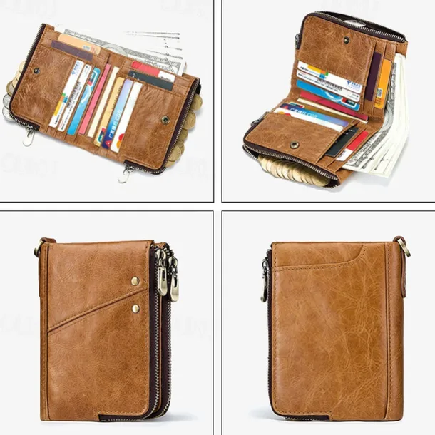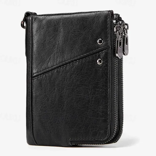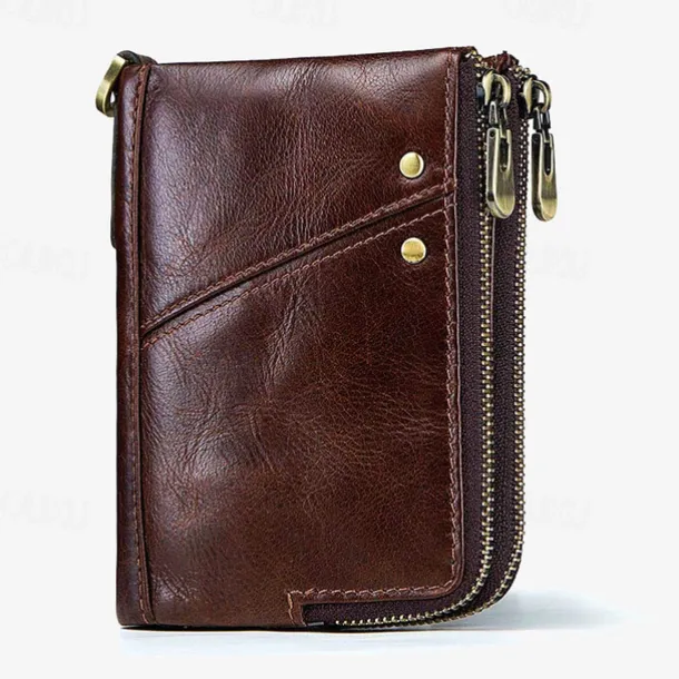 Men’s Wallet Credit Card Holder Wallet Leather Cowhide Office Shopping Daily Rivet Zipper Large Capacity RFID Blocking Solid Color Black Red Brown