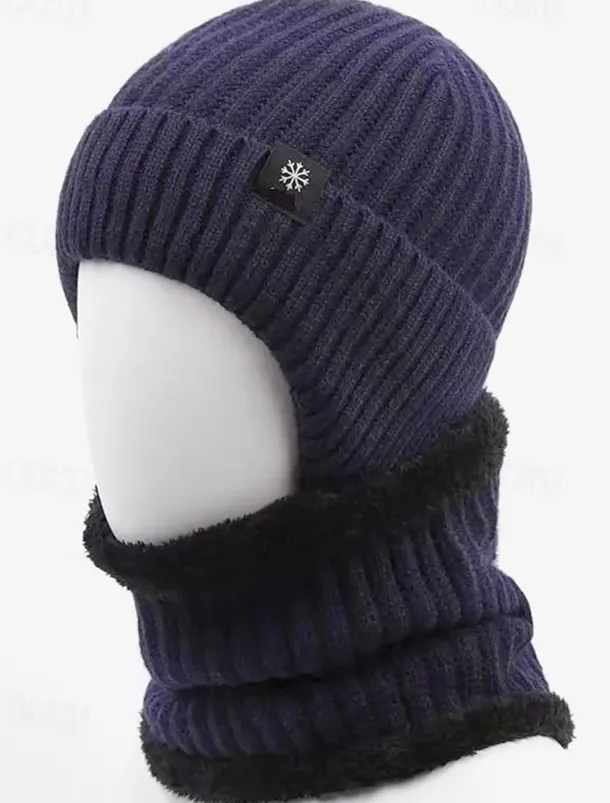 Men’s Winter Knit Beanie Hat with Scarf Set – Warm Fleece-Lined for Cold Weather Protection