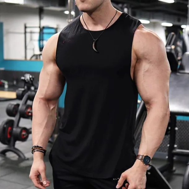 Men’s Workout Tank Top Running Tank Top Gym Tank Top Sleeveless Vest / Gilet Casual Athleisure Cotton Breathable Quick Dry Soft Gym Workout Running Walking Sportswear Activewear Solid Colored Dark