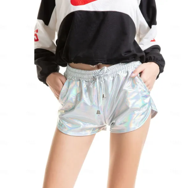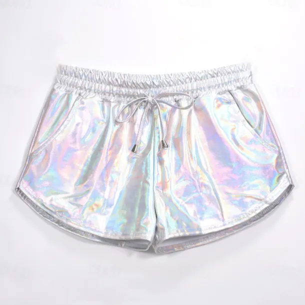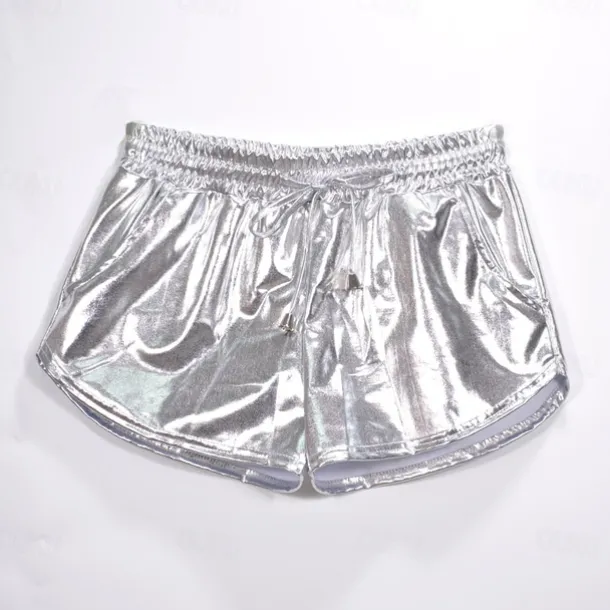 Metallic 1980s Shiny Latex Patent Shorts PU Leather Fancy Dress Women’s Masquerade Party Bachelorette Party Pride Parade Adults’ Shorts