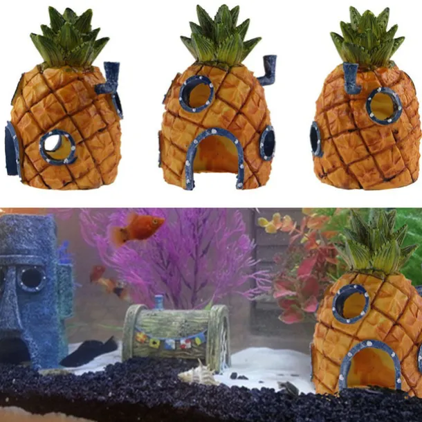 Mini Aquarium Fish Tank Ornaments Cartoon Pineapple House for Fish Tank Aquarium Decoration Aquarium Home Accessories